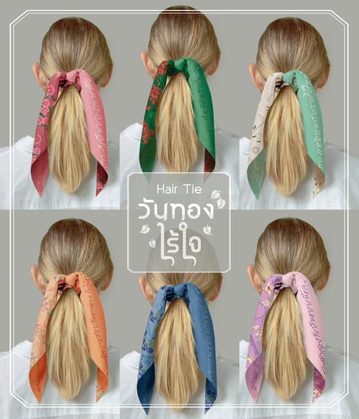 Mu : ผ้าผูกผมนี้มีสีเดิมกับยางรัดผมเวอร์ชั่นแรก ใครที่เคยซื้อไปแล้วสามารถนำผ้าผูกผมนี้ไปใช้คู่กันได้ค่ะ จะผูกเป็นโบท้ายยางรัดผม ผูกเป็นที่คาดผมสำหรับคนผมสั้น ผูกหูกระเป๋า ผูกเป็นผ้าพันคอ หรืออื่นๆ ก็ได้