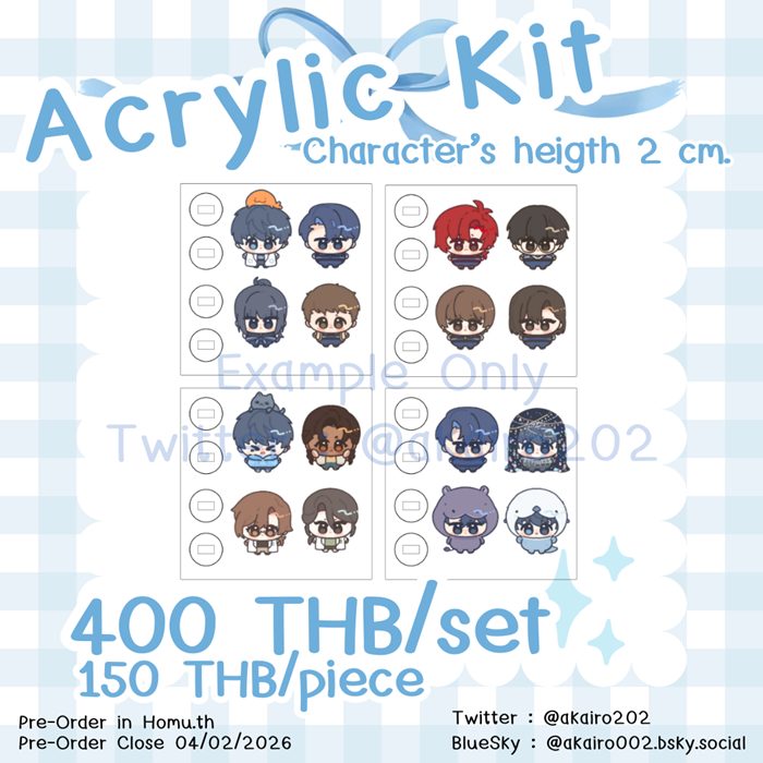 ลักษณะของสินค้า: อะคริลิคใส กรอบ6*6cm ตัวละครสูงเฉลี่ย 2cm.
