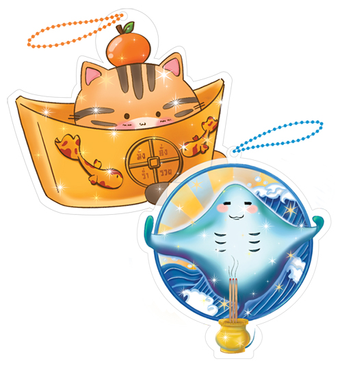 พวงกุญแจเมี้ยวทาร์ต ขนาด 7×7 cm. 2ด้าน โฮโลแกรมดาว 1 ด้าน พวงกุญแจเจ้าพ่อกระเบน ขนาด 7×7 cm. 2ด้าน โฮโลแกรมดาว 1 ด้าน