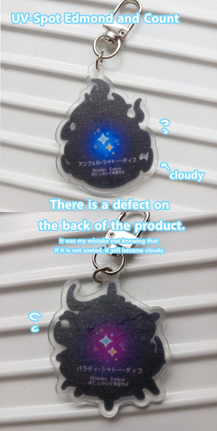 – The piece of UV-spot (Edmond and Count) on the back is cloudy. Because the back was not coated