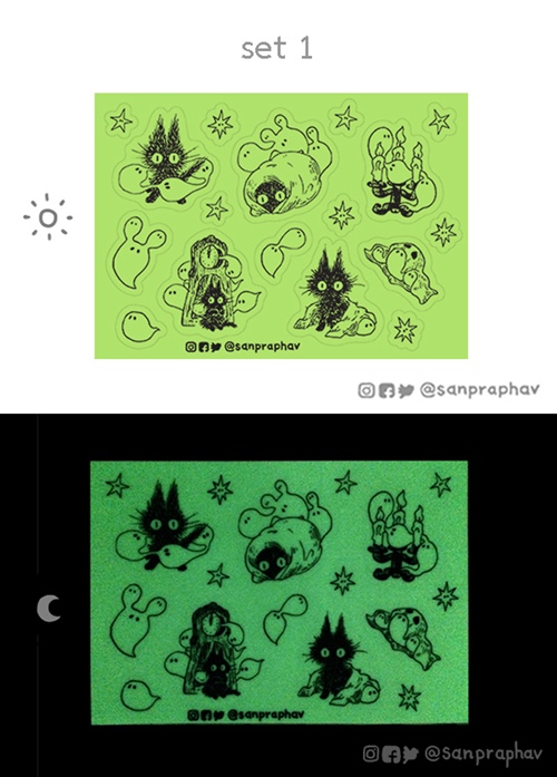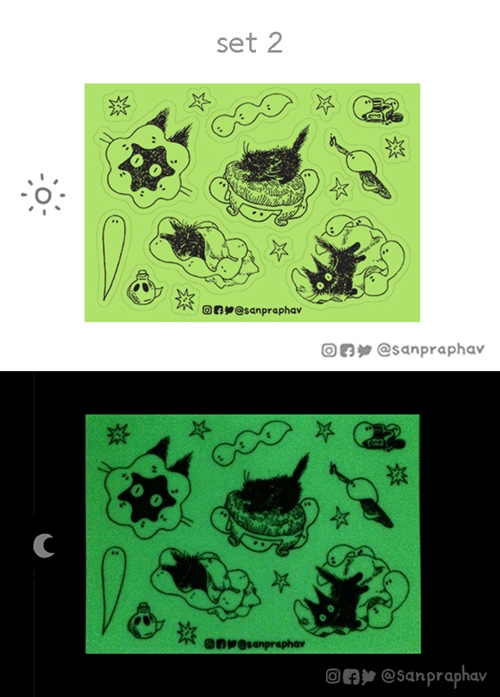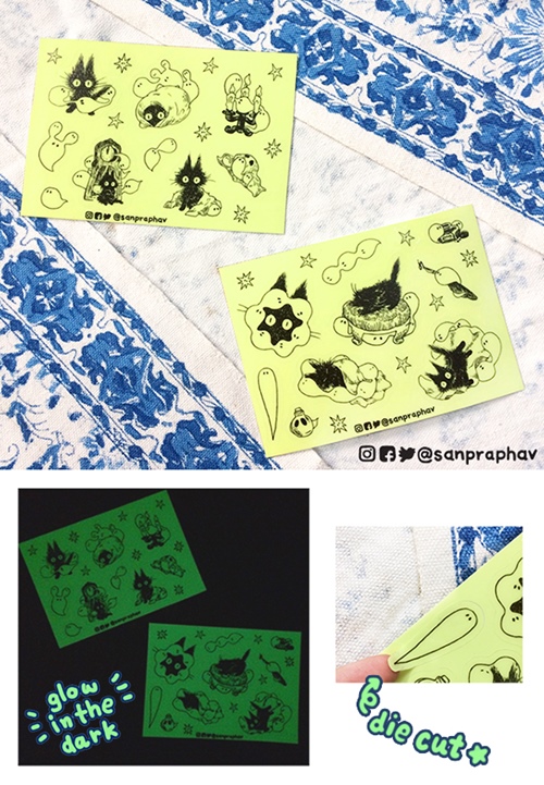 ลักษณะของสินค้า: glow-in-the-dark sticker, die cut, sheet size A6