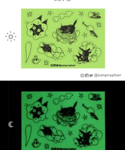 SanpraphaV : “มี 2 ลายให้เลือก อย่าลืมพาน้องอาบแสง (แสงไฟห้องก็ใช้ได้) 5-10 นาทีก่อนใช้งานนะ~ Let the sticker baths under the light (room light is also ok!) for 5-10 minutes before use ^^/”