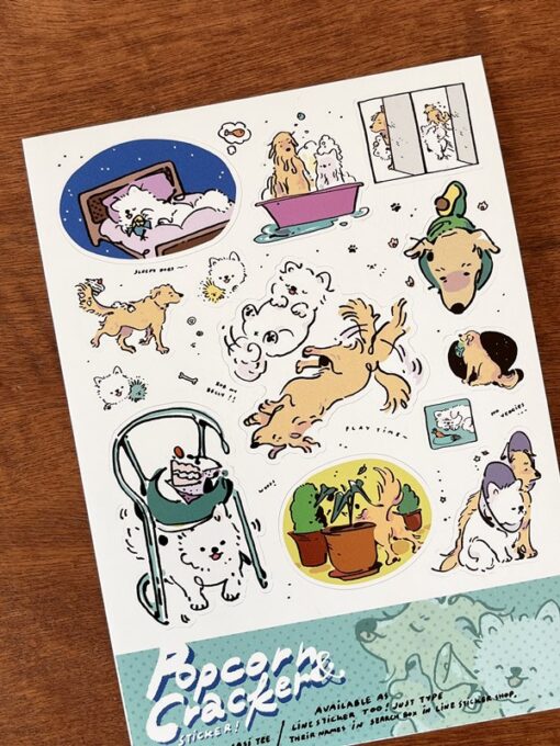 Popcorn & Cracker, two funny dogs from Tanya house. I made a Line sticker set of them specially for my sister as a grad gift, and so I thought hey wouldn’t it be great if they were available as physical stickers too? So here they are :o)