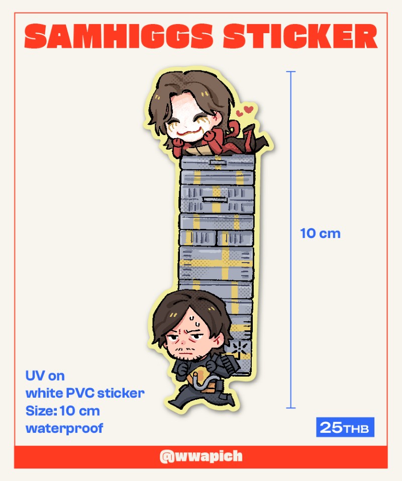 ผู้จัดทำ : wapich อ้างอิงจากเรื่อง: Death Stranding ลักษณะของสินค้า: 100% die-cut / UV-printed on white PVC sticker Size: 10 cm / Waterproof