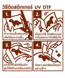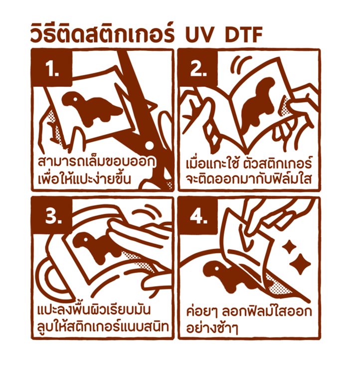 *โปรดระวัง สติกเกอร์ UV DTF มีวิธีการติดที่ยากกว่าสติกเกอร์ประเภทอื่น ไม่ควรแปะลงบนวัสดุที่สามารถฉีกขาด