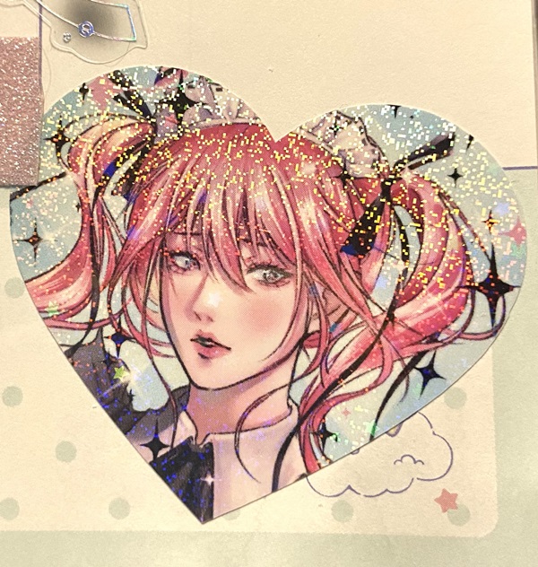 สติ๊กเกอร์โฮโลแกรมรูปหัวใจจากรูปอาร์ตปริ้นที่เคยวาดไว้ค่ะ (อาร์ตปริ้นท์ก็ขายในเว็บด้วยเหมือนกันนะคะ><)