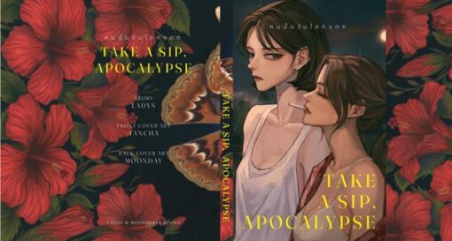 Book Jacket ในธีมใบปิดหนัง ด้านหน้า (วาดโดย TANCHA) เป็นรูปเก้ยและพาร์ 2 ตัวละครหลักจากนิยายเรื่อง Take a Sip, Apocalypse หนนั้นวันโลกแตก ด้านหลัง (วาดโดย Moonday) เป็นรูปมอธกับดอกชบาสีแดงที่หากได้อ่านก็จะรู้ถึงเบื้องลึกของภาพและชื่นชอบได้ไม่ยาก