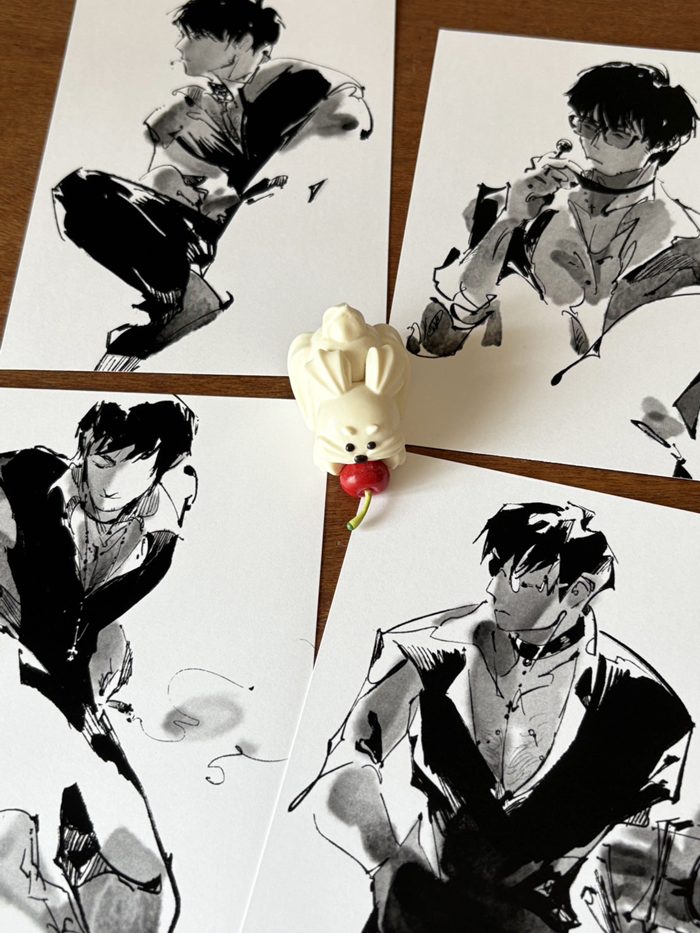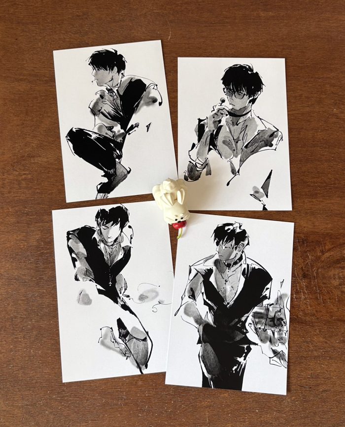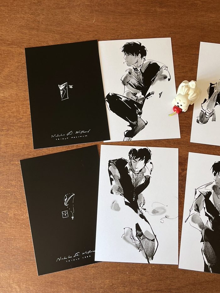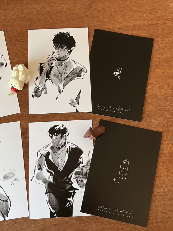 Prints set of 4 Nicholas D. Wolfwood from Trigun Maximum, Trigun TV Series 1998, Trigun Badlands Rumble, Trigun Stampede 2023.