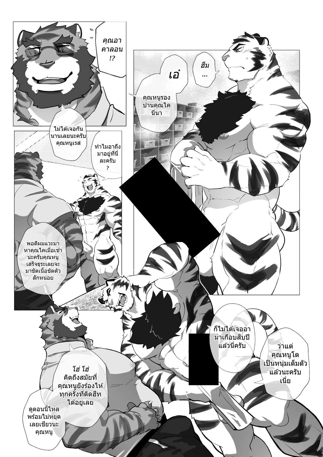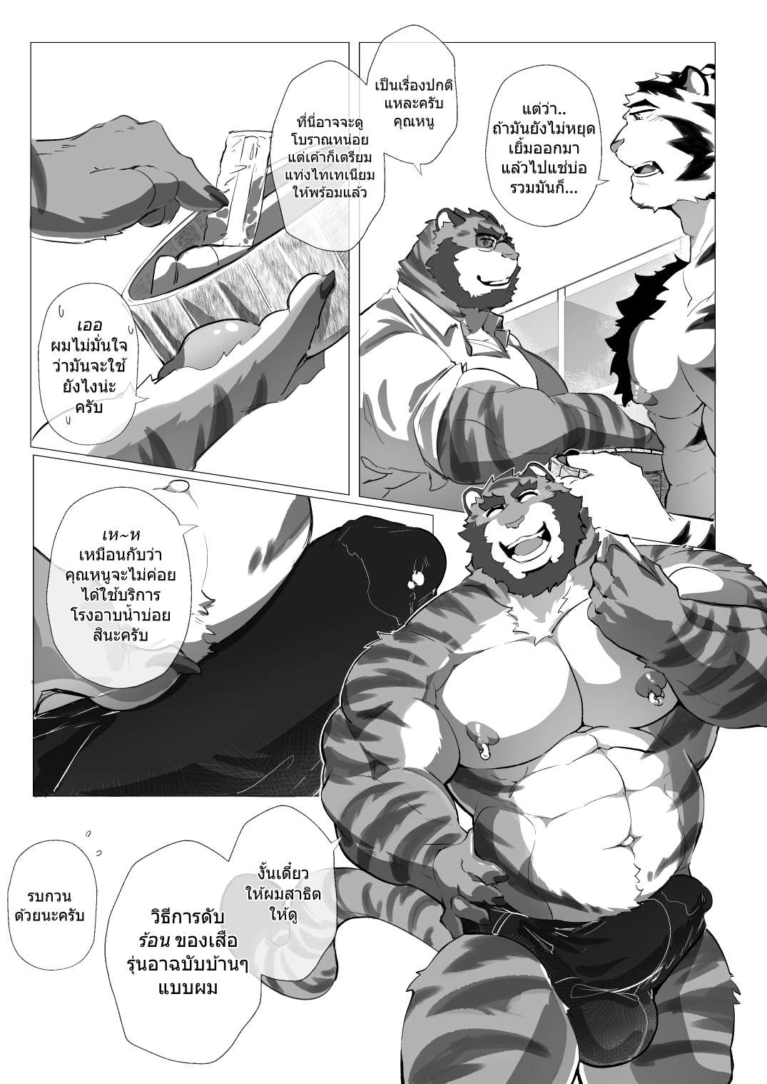 When Uncle Tiger meets Young Muscular White Tiger in public bathhouse Only for Rut Beastmen